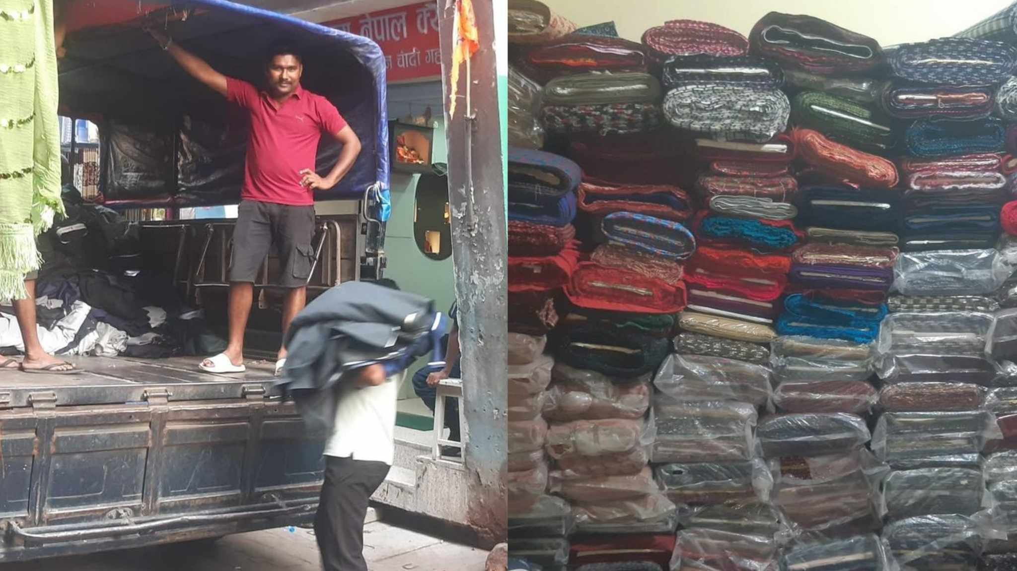 विशेष सूचनाको आधारमा पम्प बिल्डिङकाे विभिन्न गाेदाममा जिल्ला प्रहरी कार्यालयकाे बिशेष टाेलीले छापामारी गरी भण्डारण गरि राखिएकाे तस्करीकाे करोडौं मूल्य बराबरको कपडा बरामद गरेकाे हो । पम्पम बिलडिङको भवनमा रहेको विभिन्न गोदामबाट सुट, पाइन्ट, कुर्ता, सुरुवाल, साडीसहितका धेरै परिमाणमा थानका कपडा बरामद भएको प्रहरीले जनाएकाे छ ।