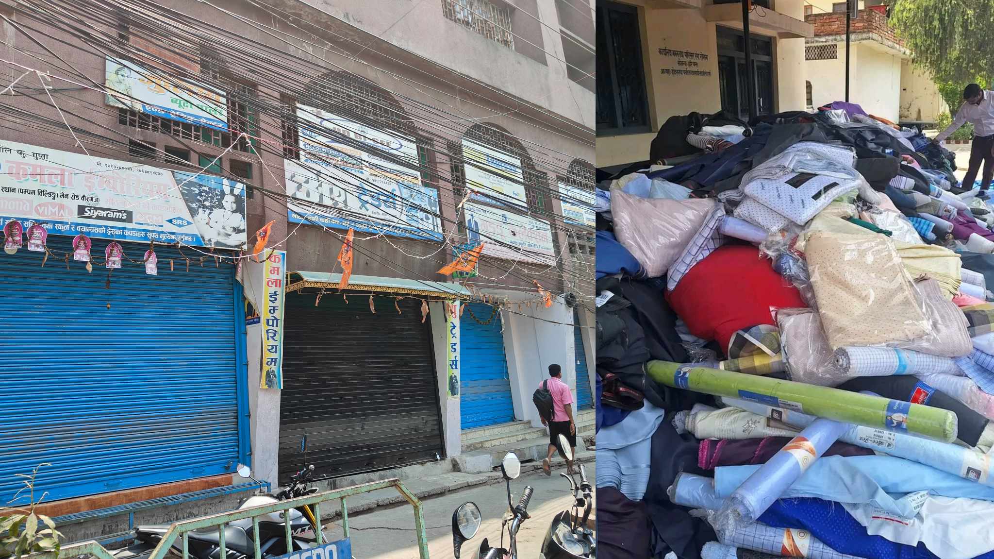 वीरगंज । प्रहरीले पम्पम बिल्डिङका अन्य गाेदाम तथा कपडा पसलहरु पनि छापामारी गर्न सक्ने त्रासका कारण शुक्रबार बन्द भएका छन् । वीरगंज महानगरपालिकाकाे वडा नं.६ महाबिरस्थानस्थित पम्पम बिल्डिङमा रहेका अधिकांश कपडा पसलका सटरहरु शुक्रबार विहानैदेखि बन्द रहेका छन् ।