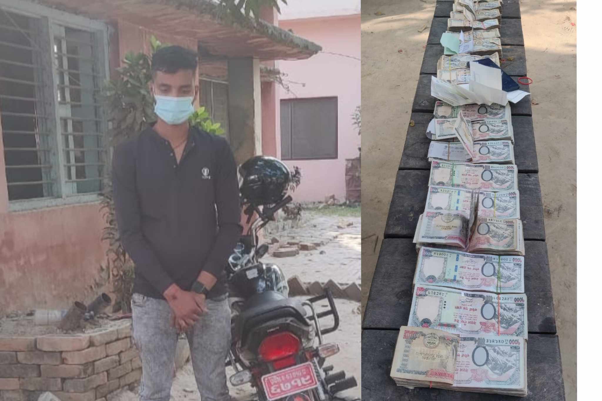 उनकाे साथबाट नेपाली रु १ हजार दरको नोट ८८९ थान रु ८ लाख ८९ हजार, नेपाली रु ५ सय दरको नोट ८५० थान रु. ४ लाख २५ हजार र नेपाली रु एक सय दरको नोट १० थान रु. एक हजार फेला परेकाे प्रवक्ता थापाले वताए । साथै उनकाे साथबाट बिभिन्न बैंकको खाली चेकहरु ७ थान समेत फेला परेकाे थापाले वताए ।