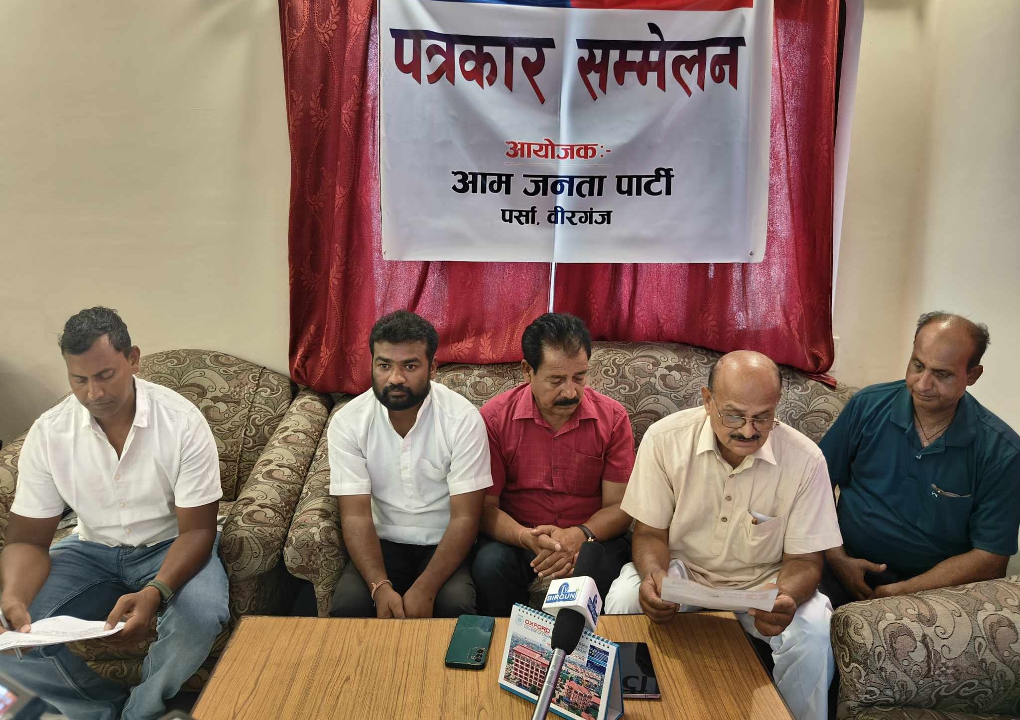 वीरगंजमा पत्रकार सम्मेलनको आयोजना गर्दै आजपाले यही जेठ १६ गते पर्सा जिल्ला भेला आयोजना गर्ने जानकारी गराएको हो । लामो समयदेखि वीरगंजलाई अघोषित आर्थिक राजधानी बनाइएको प्रति आपत्ती जनाउँदै आजपा पर्साका इन्जार्ज कदम रसुलले राजधानी घोषणा गर्नुपर्ने माग गरे ।