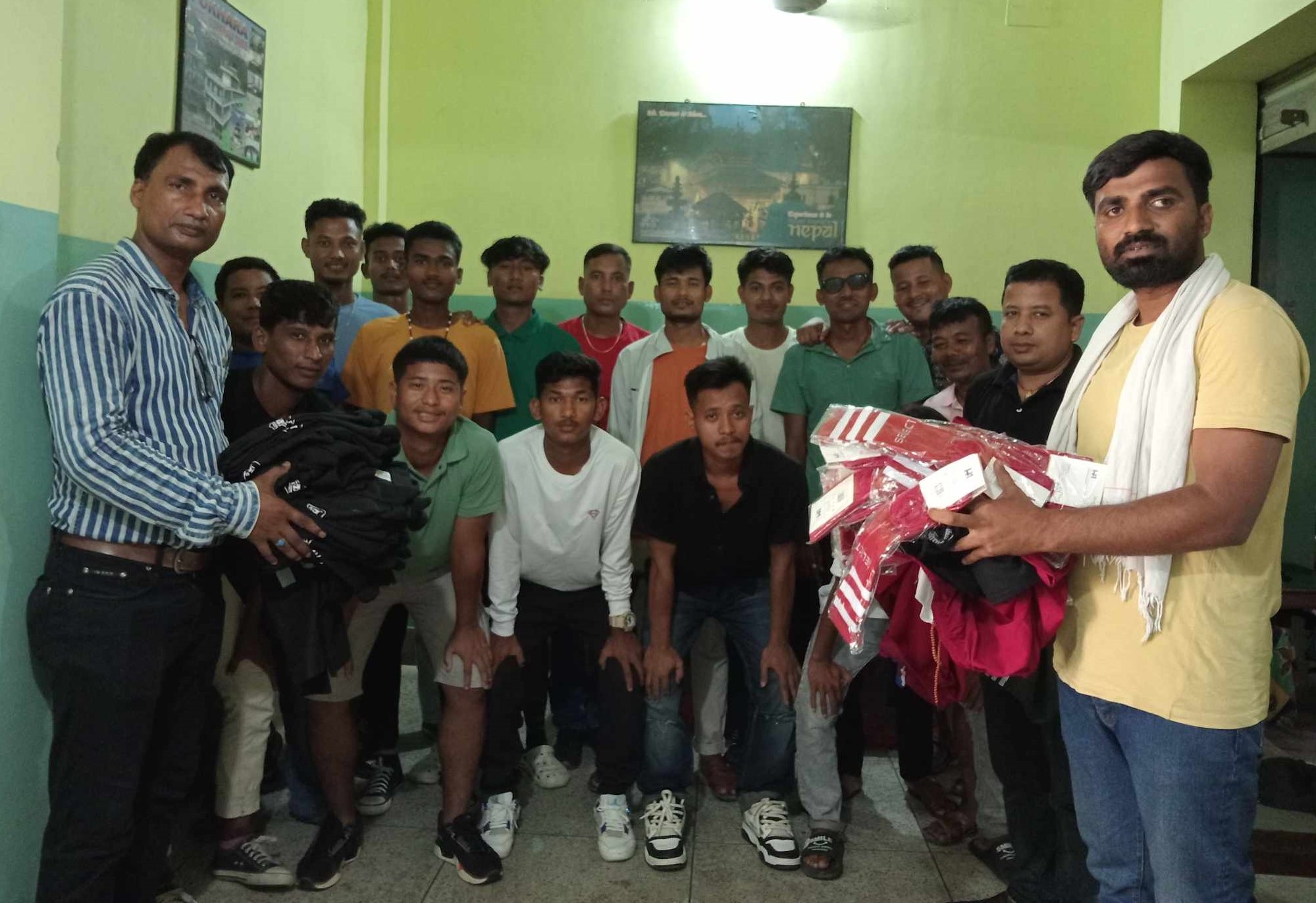 बुधबार एक कार्यक्रमका बिच उनीहरूलाई खेल मैदानमा प्रवेश गर्नु अगाडि लक्ष्मणवा युवा क्लबका अध्यक्ष मानदेव हजाराको पहलमा जर्सी सहितको समाग्री वितरण गरिएको हो । नेकपा एमालेका नेता समेत रहेका हजाराले खेलकुद बिकास गर्नका लागि खेलाडीलाई सहयोग स्वरुप समाग्री वितरण गरिएको बताए ।
