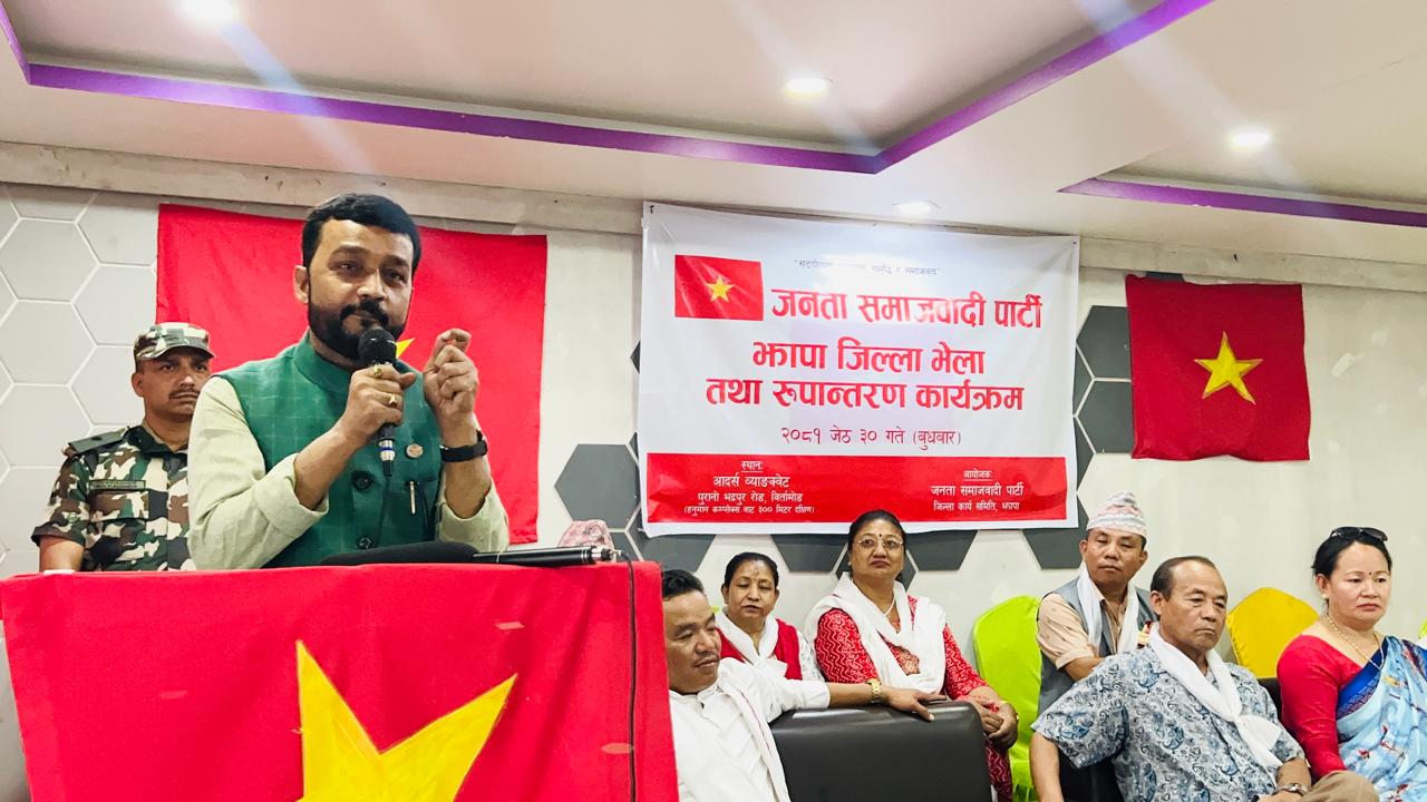 कार्यक्रमले रूपान्तरणअन्तर्गत झापा जिल्लाको नयाँ कार्यसमिति समेत चयन गरेको छ । जिल्ला कार्यसमितिको अध्यक्षमा समर राई, उपाध्यक्षमा सन्तोष गणेश, ज्ञानेन्द्र कुरुम्बाङ, सचिवमा रोम घिमिरे, उपसचिवमा लक्ष्मी सुब्बा, चिजा राई, कोषाध्यक्षमा गीता राई रहनुभएको छ भने सदस्यहरूमा हर्क खालिङ, उदय गुरुङ, रमन राजवंशी, बालकुमार भुजेल, वासुदेव राई, पल्टन ताजपुरीया, विष्णु महतो, सुदिप थुलुङ, प्रेम थुलुङ, चित्रबहादुर राई, राजेश देवान, साम मोहम्मद मियाँ, अमला राई, पूर्णकुमारी मगर राई लगायत रहेका छन् ।