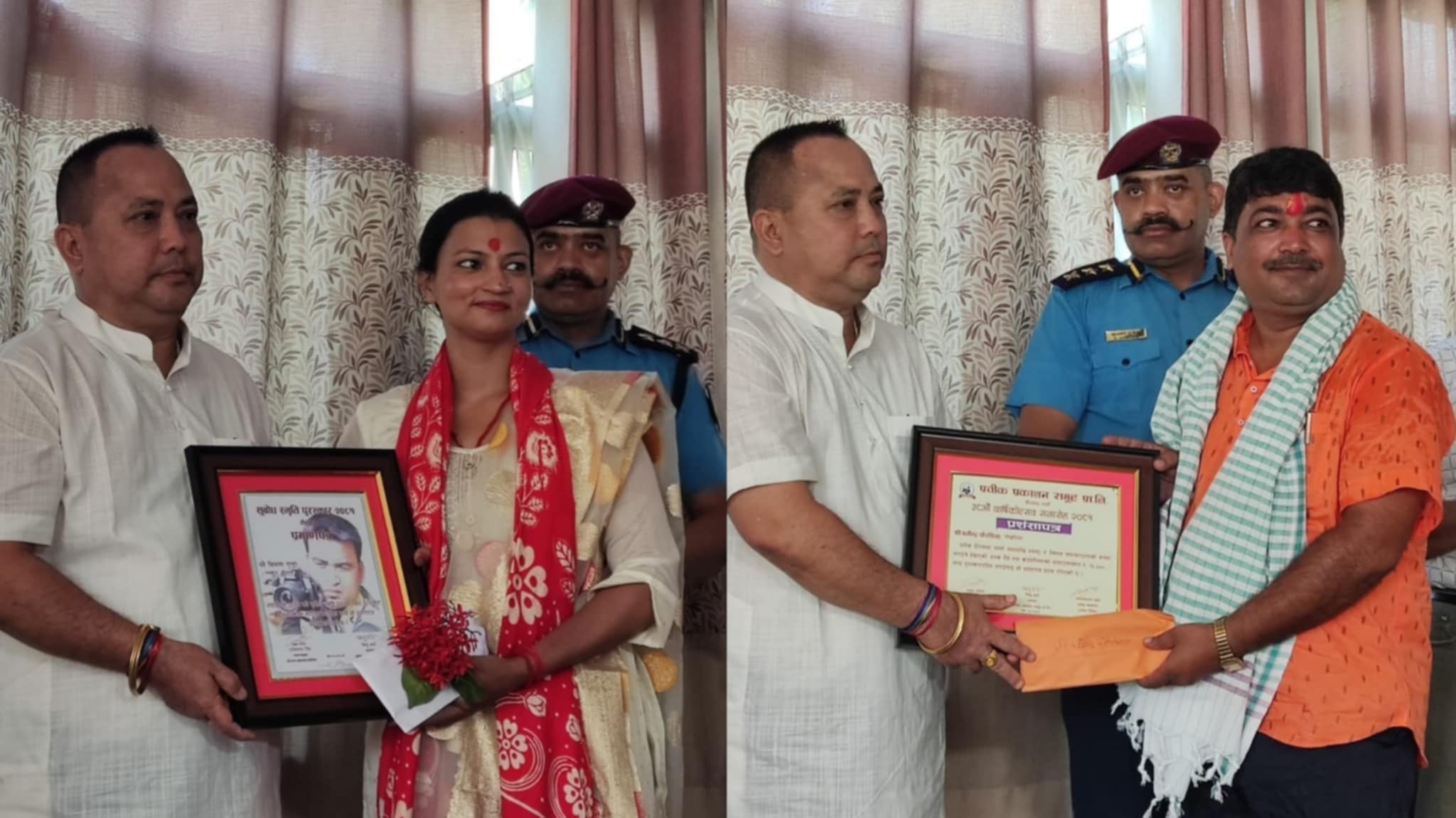 समारोहमा प्रतीक दैनिककै ग्रामिण संवाददाता धर्मेन्द्र चौरसियालाई उत्कृष्ट संवाददाताको रूपमा रु १५ हजार राशीबाट पुरस्कृत गरिएकाे हाे । साथै, स्तम्भकार कुमार रूपाखेती रु १० हजार र प्रतीक दैनिकका कर्मचारी महमद तबरेज हवारी रु ५ हजार राशीसहित पुरस्कृत भएकाे प्रतिक दैनिकका सम्पादक शत्रुधन नेपालले वताए ।