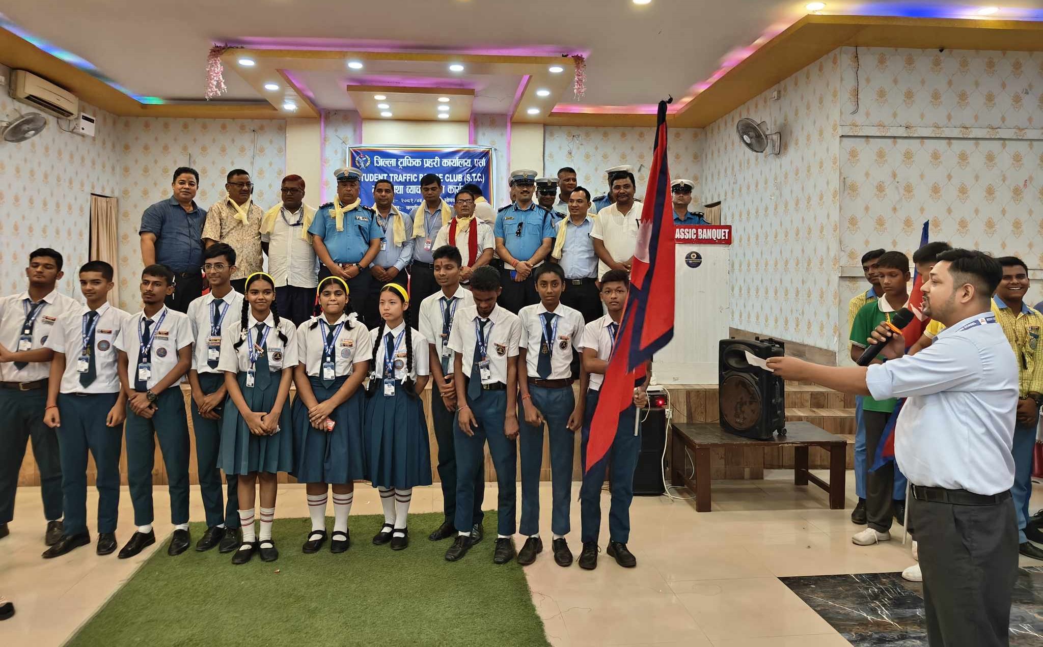 वीरगंज । जिल्ला ट्राफिक प्रहरी कार्यालय वीरगंज पर्साकाे आयाेजनामा साेमबार वीरगंजमा स्टुडेन्ट ट्राफिक पुलिस क्लब (एसटिसि) गठन तथा व्याच वितरण कार्यक्रम सम्पन्न भएकाे छ ।