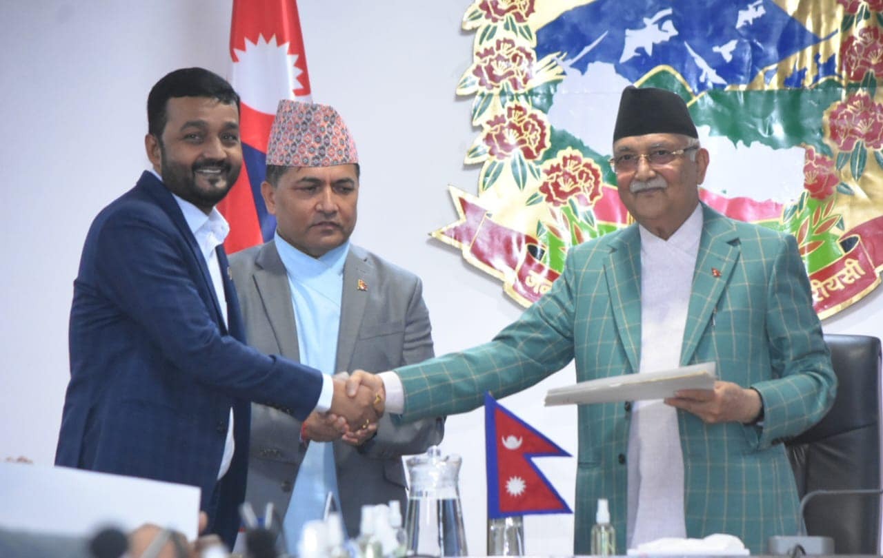 सिंहदरबारस्थित प्रधानमन्त्री तथा मन्त्रिपरिषद्को कार्यालयमा बिहीबार आयोजित कार्यक्रममा प्रधानमन्त्री ओली र मन्त्री यादवले सम्झौतामा हस्ताक्षर गरी सम्झौताको प्रति आदानप्रदान गरेका हुन् ।