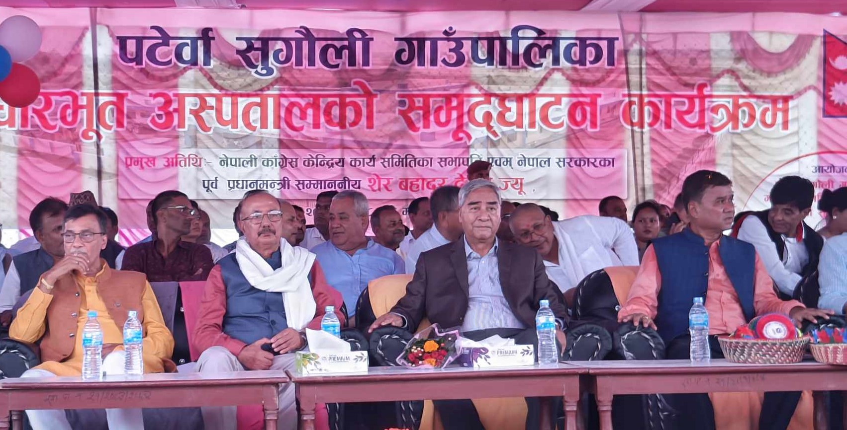 वीरगंज । नेपाली काँग्रेसका सभापति शेरबहादुर देउवाले देशमा संघीयता आएपछि जनताले आफ्नै गाउँ ठाउँमा स्वास्थ्य र शिक्षा पाइरहेकाे वताएका छन् । मंगलबार पर्साको पटेर्वा सुगौली-४ मा नवनिर्मित आधारभूत अस्पतालको उद्घाटन कार्यक्रमलाई सम्बाेधन गर्दै पूर्वप्रधानमन्त्री देउवाले यस्ताे वताएका हुन् ।