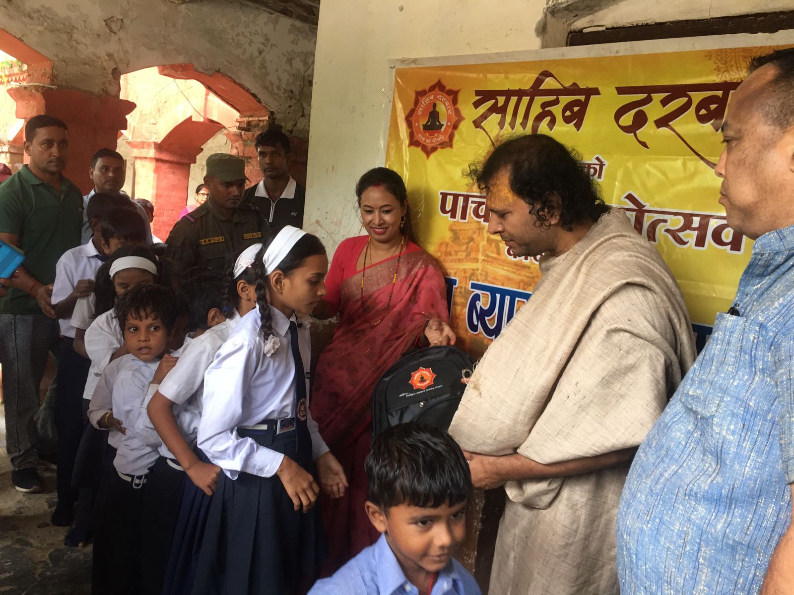 वीरगंज । साहिब दरबारको ५ औँ वार्षिकोत्सवाको अवसरमा बिहिबार एक कार्यक्रमका विच त्रिजुद्ध माविमा बालविकास कक्षामा अध्ययनरत ८६ जना विधार्थीहरुलाई स्कूल ब्याग वितरण गरिएको छ ।