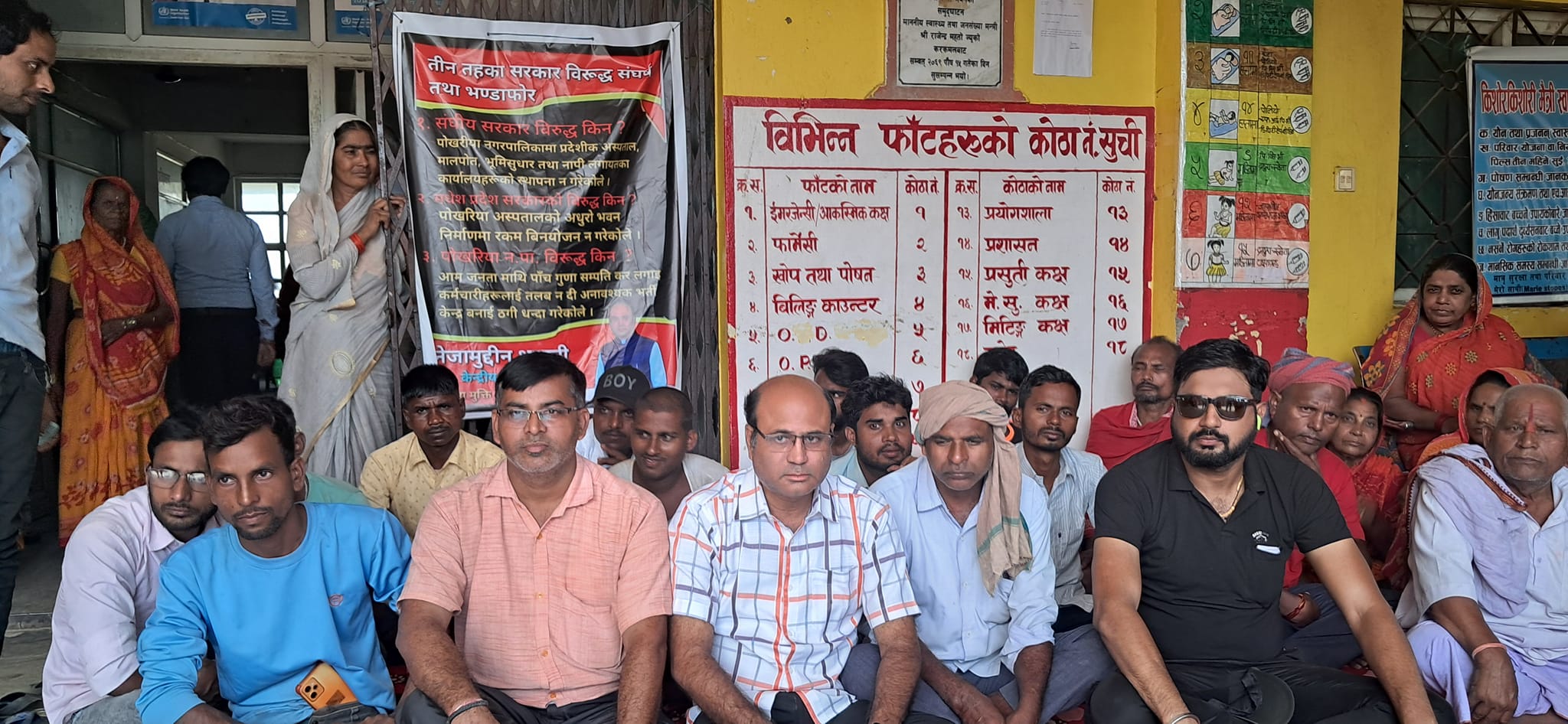 साथै नगरपालिकाले जनता माथी अनावश्यक कर लगाई शेवा विस्तार नगरी हाकिमको टिप्पणी आदेशमा नगरपालिकालाई भर्ती केन्द्र बनाई ठगी धन्दा गरिरहेको विराेधमा समेत धर्ना बसिएकाे नेता सम्मानीले वताए ।
