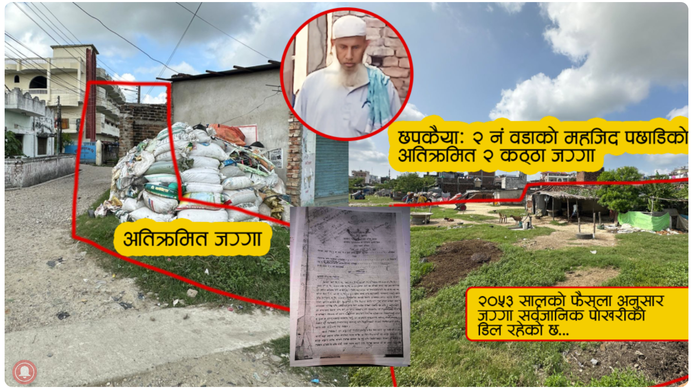 वीरगंज । वीरगंजका एक जना भुमाफियाका कारण विकास निर्माणको काम नै अबरुद्ध भएको छ । वीरगंज महानगरपालिकाको वडा नं. २ छपकैया निवासी सफितुल्ला ठकुराईले सार्वजनिक बाटाको जग्गा अतिक्रमण गरी भौतिक संरचना निर्माण गरेपछि बाटो निर्माण कार्य नै अवरुद्ध भएको हो ।
