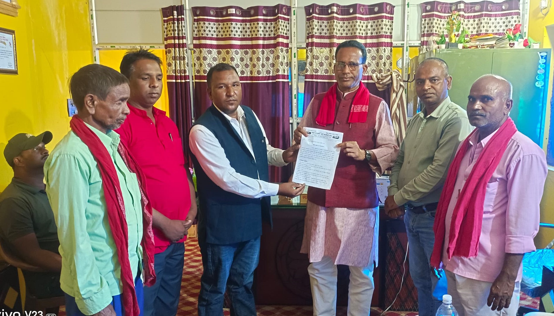 माओवादी केन्द्र पाेखरिया नगर अध्यक्ष कुर्मीकाे नेतृत्वमा ज्ञापन पत्र बुझाउन गएकाे टाेलीमा नगर उपाध्यक्ष हरेन्द्र महताे चाई, नगर सचिव लक्ष्मीनारायण ठाकुर, कोषाध्यक्ष सोवालाल ठाकुर, सदस्य धन्सुनर कुर्मी, देबेन्द्र साह लगायतकाे सहभागिता रहेकाे थियाे ।