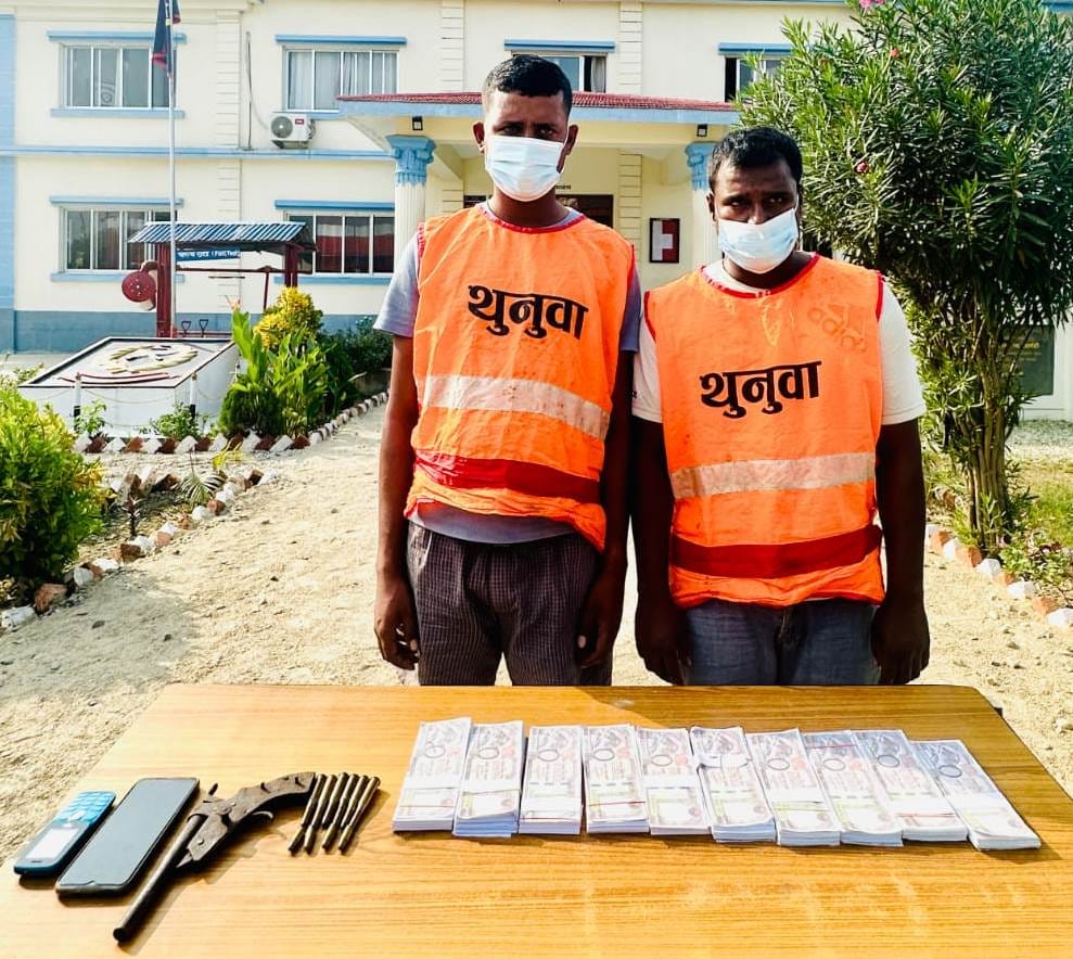 सर्लाहीकाे गोडैता नगरपालिकाकाे वडा नं. १२ स्थित चेकजाँच गर्ने क्रममा दुबै जनाकाे साथबाट फलामको घरेलु नलकटुवा पेस्तोल १ थान, केएमएफ ८ एमएम लेखिएको राउण्ड (गोली) ६ थान, केएफ ९ एमएम लेखिएको राउण्ड (गोली) ४ थान गोलीहरु र खोटा मुद्रा समेत बरामद भएको जिल्ला प्रहरी कार्यालय सर्लाहीका प्रवक्ता प्रहरी नायब उपरिक्षक दिपक श्रेष्ठले जानकारी दिए ।