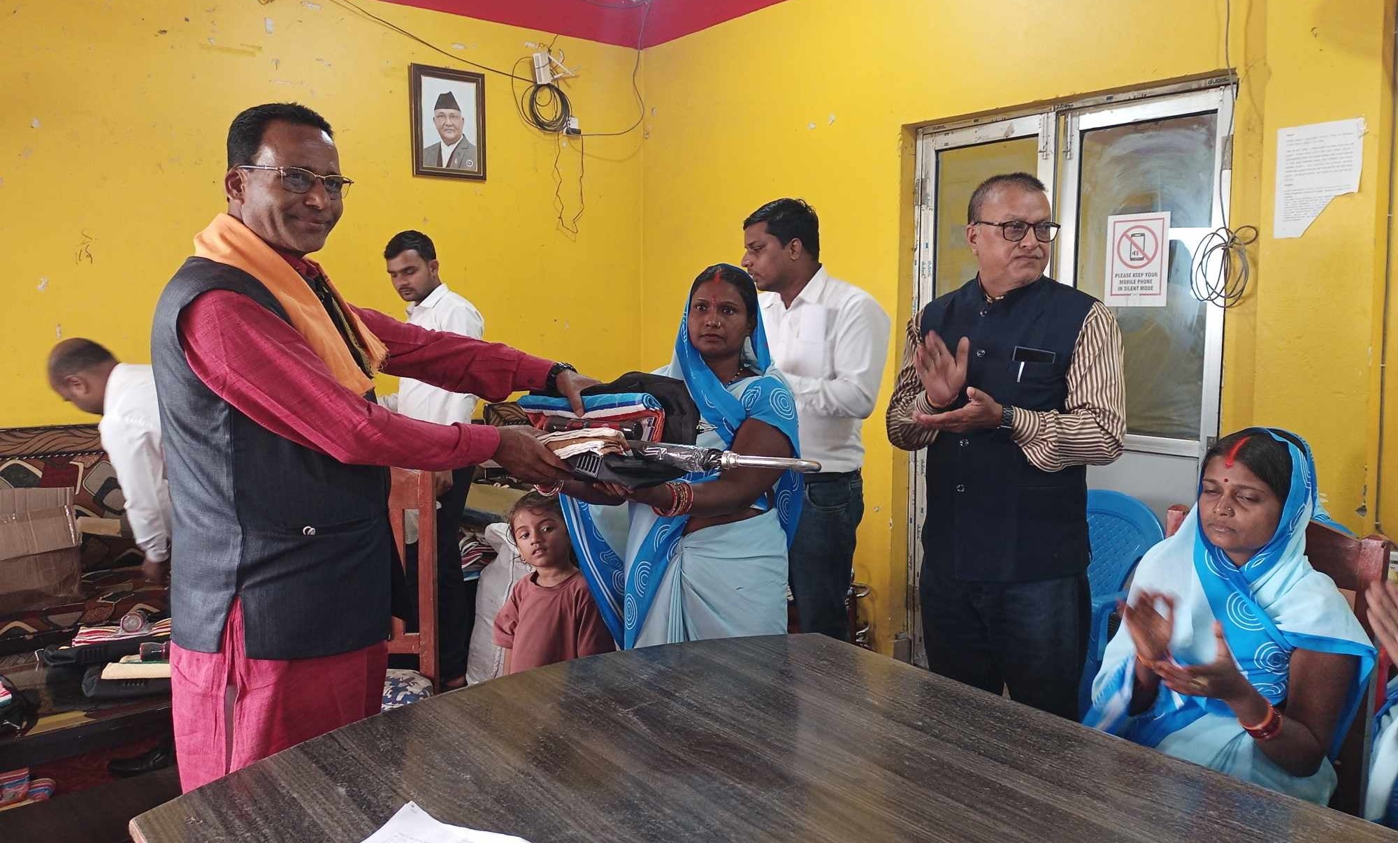 कार्यक्रमका प्रमुख अतिथी नगरपालिकाका प्रमुख प्रदुमन प्रसाद चाैहानले नगरपालिकाकाे वडा नं. १ देखि १० सम्मका महिला स्वयेम् सेविकालाई छाता १ थान, टर्च लाईट १ थान, टावल १ थान र बैग १ थान वितरण गरेर सम्मान गरेका थिए ।