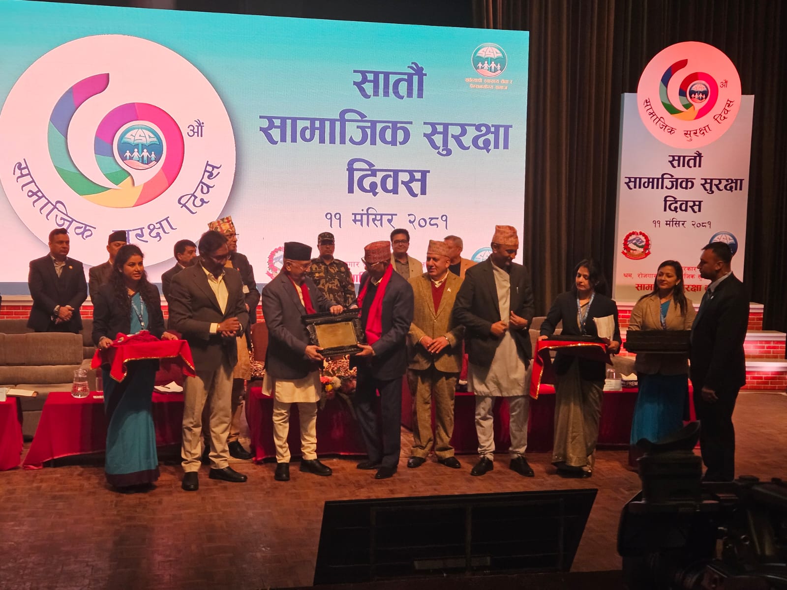 मंगलबार काठमाडौंको प्रज्ञा भवन कमलादीमा भएको ७ औँ सामाजिक सुरक्षा दिवस कार्यक्रमको अवसरमा प्रधानमन्त्री केपी शर्मा ओलीबाट नेशनल मेडिकल कलेज शिक्षण अस्पतालका अध्यक्ष प्रा.डा. जैनुदिन अन्सारीलाई सम्मानपत्र प्रदान गरिएको हो ।