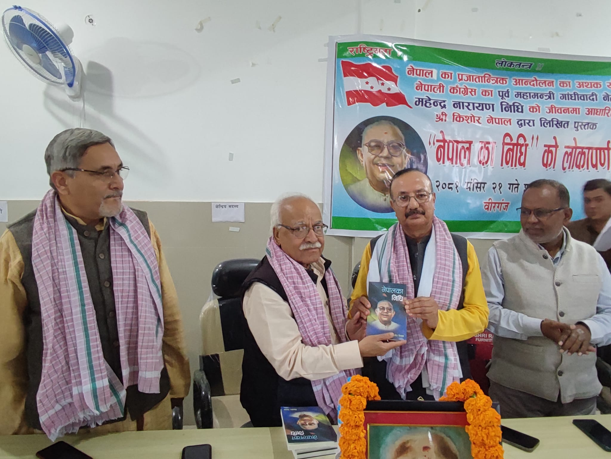 वीरगंज । नेपाली कांग्रेसका पुर्व महामन्त्री तथा गान्धिवादी नेता महेन्द्रनारायण निधिको सङ्घर्षमय जीवनीमा आधारित ‘नेपालका निधि’ नामक पुस्तक लोकार्पण भएको छ । वीरगंजस्थित नेपाली कांग्रेस पर्साकाे पार्टी कार्यलयमा भएकाे एक कार्यक्रममा नेपाली कांग्रेसका केन्द्रिय सदस्य एवं पुर्व मन्त्री रमेश रिजालले सो पुस्तकको लोकार्पण गरेका हुन् ।