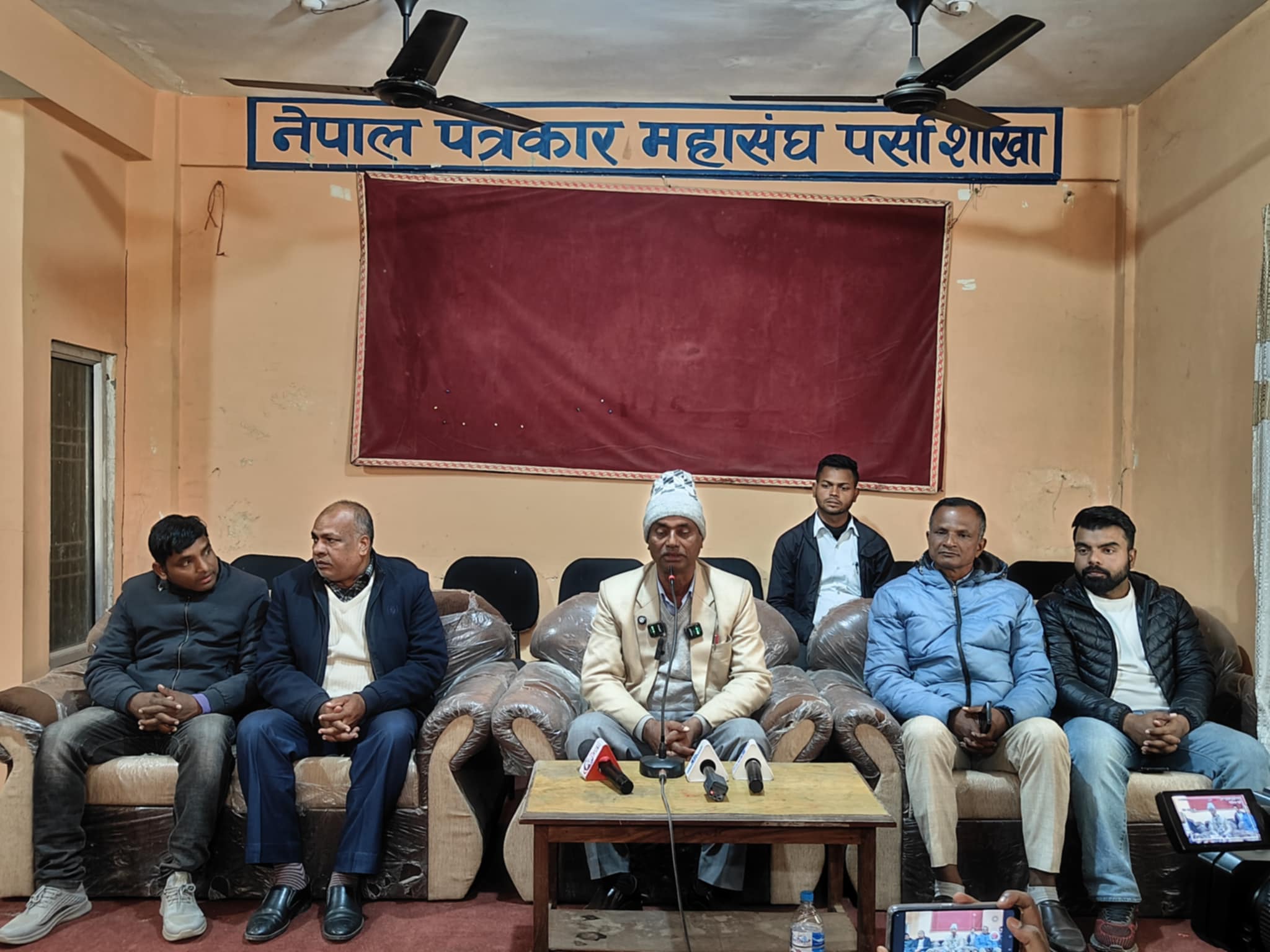 नेपाल पत्रकार महासंघ पर्साकाे सभाहलमा भएकाे पत्रकार सम्मेलनमा वडा नं. ६ का वडाध्यक्ष प्रमाेद प्रसाद साह, वडा नं. ७ का वडाध्यक्ष बिरेन्द्र प्रसाद यादव लगायतकाे पनि उपस्थिती रहेकाे थियाे ।