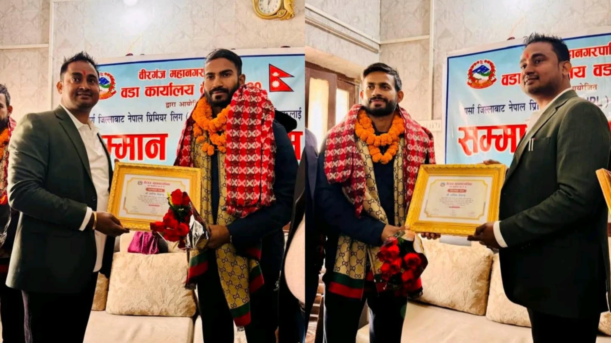भर्खरै सम्पन्न एनपीएल प्रतियोगितामा जनकपुर बोल्ट्सलाई विजेता बनाउने कप्तान आशिफ शेख र सुदूरपश्चिम रोयल्सलाई उपविजेता बनाउन महत्त्वपूर्ण भूमिका खेल्ने आरिफ शेखलाई वीरगंज महानगरपालिका वडा नं. १० को कार्यालयले जनही नगद ५१ हजार रुपैयाँ र प्रशंसा पत्रद्वारा सम्मान गरेको हो ।