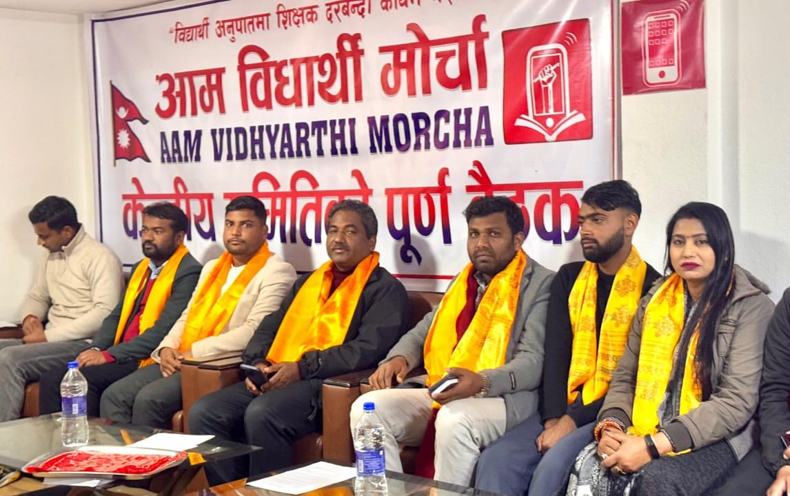 विद्यार्थी संख्याको अनुपातमा शिक्षक दरबन्दी कायम गराउन तथा शिक्षा क्षेत्रका सिण्डिकेट, विभेद र ब्रह्मलुट विरुद्ध जारी संघर्षलाई थप व्यवस्थित एवं निर्णायक बनाउने निष्कर्ष सहित आम विद्यार्थी मोर्चाको केन्द्रीय कार्यसमितिको पूर्ण बैठक सम्पन्न भएकाे आम विद्यार्थी मोर्चा केन्द्रिय इन्चार्ज उमेश कुशवाहाले जानकारी दिए ।