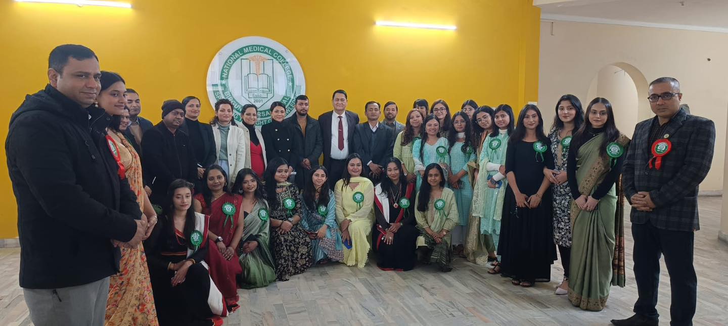 मेडिकल कलेजका प्रिन्सिपल डा.के.ऐन. सिंहको अध्यक्षता तथा नेशनल मेडिकल कलेजका अध्यक्ष प्रो.डा. जेनुद्दिन अंसारीको प्रमुख आतिथ्यतामा सम्पन्न कार्यक्रममा बोल्दै अध्यक्ष अंसारीले नेशनल मेडिकल कलेजले विद्यार्थीहरूको विशिष्ठ क्षमताको पहिचान गरी त्यही अनुसार विद्यार्थीहरूको चौतर्फी विकासका लागि वातावरण बनाउदै आएको बताए ।