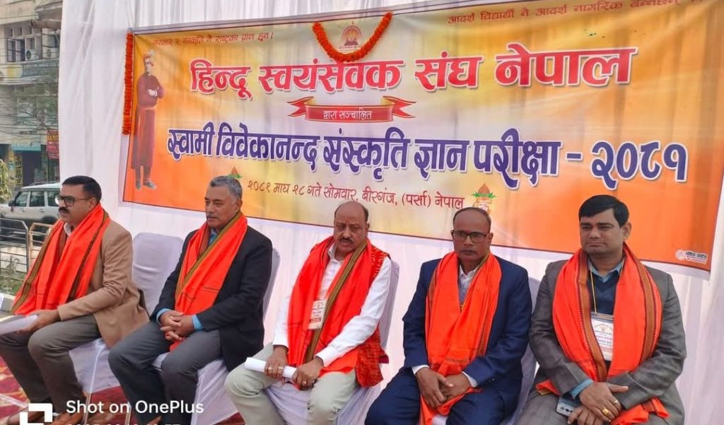 वीरगंज । हिन्दु स्वयंसेवक संघ नेपालद्वारा आयोजित स्वामी विवेकानन्द संस्कृति ज्ञान परीक्षा २०८१ साेमबार वीरगंजमा सम्पन्न भएकाे छ ।
