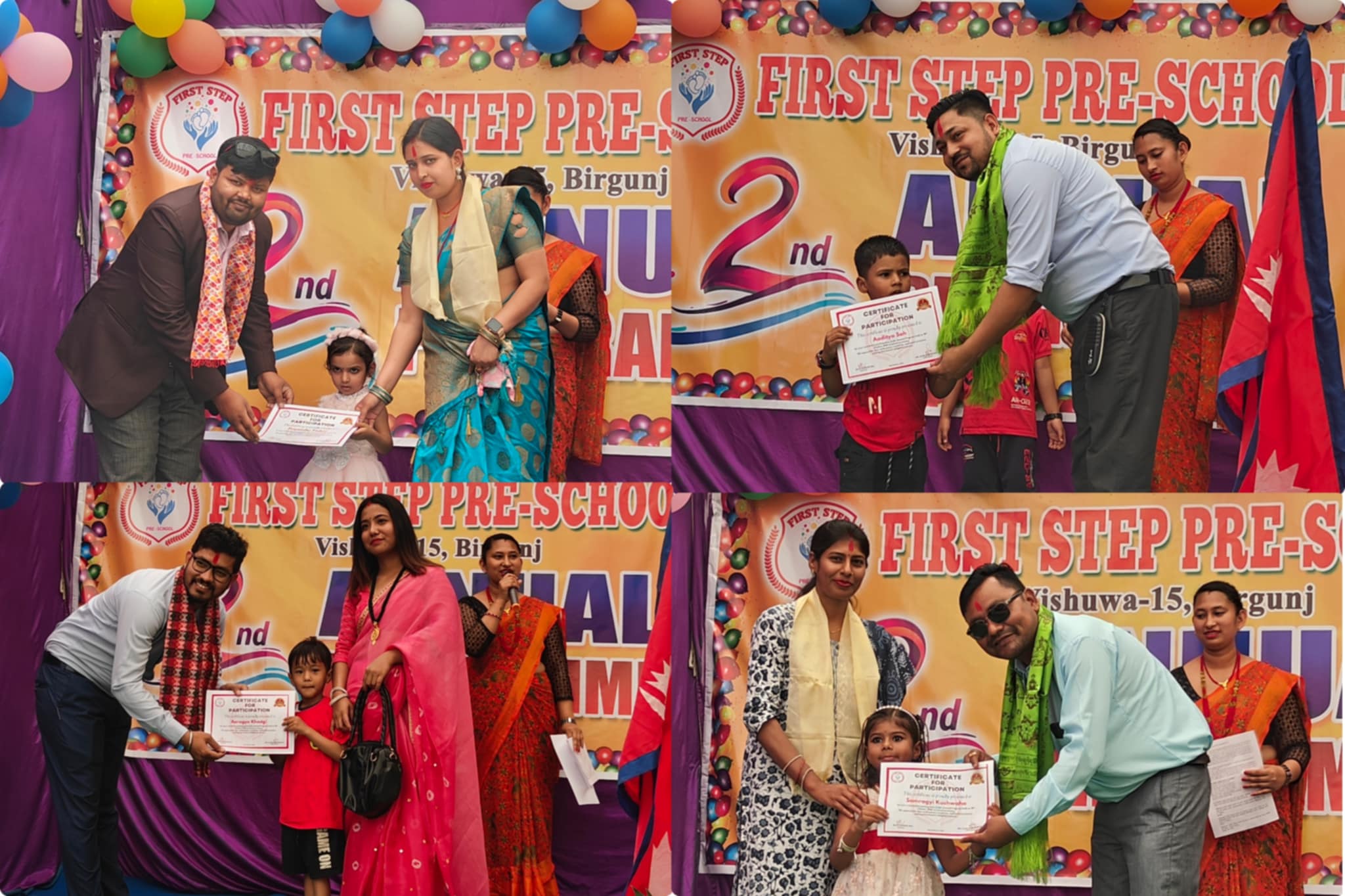 वीरगंज । वीरगंज महानगरपालिकाकाे वडा नं. १५ मा रहेकाे फस्ट स्टेप प्रिस्कुलकाे दाेस्राे बार्षिकाेत्सव साेमबार सम्पन्न भएकाे छ । विद्यालयका प्रवन्धक विजय कुमार बलकाे अध्यक्षतामा भएकाे कार्यक्रमकाे उद्घाटन हिसान पर्साका उपाध्यक्ष आलोक चौरसियाले गरेका थिए ।