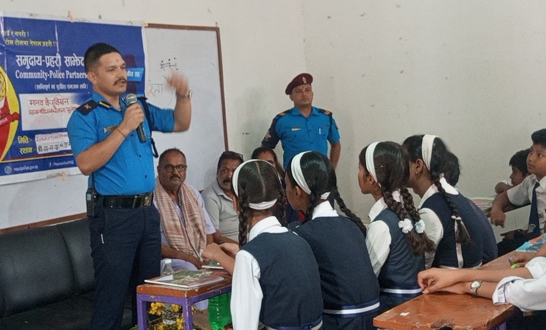 वीरगंज। वीरगंजको कुम्हालटोलस्थित मुनलाईट माद्यामिक विद्यालयमा मानव बेचबिखनविरुद्ध सचेतनामुलक कार्यक्रम सम्पन्न भएको छ । सामुदायिक प्रहरी साझेदारी कार्यक्रमअन्र्तगत सामुदायिक सेवा केन्द्र कुम्हालटोलको आयोजनामा कार्यक्रम सम्पन्न भएको हो ।
