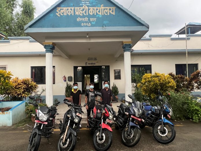 विभिन्न मिति, समय र स्थानहरूबाट हराएका वा चोरी भएका मोटरसाइकलहरू फेला पार्न इलाका प्रहरी कार्यालय कोल्हवीमा निवेदन तथा जाहेरी दरखास्त प्राप्त भएपछि, प्रहरी निरीक्षक रंजन मिश्रको कमाण्डमा खटिएको टोलीले खोजतलासका क्रममा चोरीमा संलग्न ३ जनालाई पक्राउ गरेको हो ।
