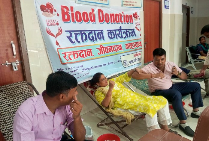 वीरगंज । वीरगंज–१५ स्थित द हिमाल नर्सिङ्ग इन्स्टिच्युटको परिसरमा शुक्रबार रक्तदान कार्यक्रम सम्पन्न भएको छ । साउथ सिटी हिमाल हस्पिटल प्रा.लि.द्वारा आयाेजित कार्यक्रममा कार्यक्रममा १२ महिला सहित ४१ जना रक्तदान गरेका छन्।