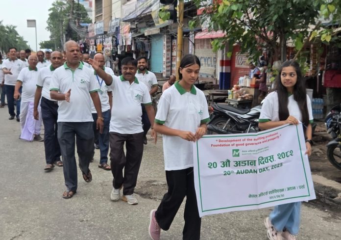वीरगंज । नेपाल अडिटर्स एशोसिएशन (अडान) पर्साको आयोजनामा मंगलबार २०औं अडान दिवस भव्य र सभ्य रूपमा सम्पन्न भएको छ । दिवसको अवसरमा लेखापरीक्षकहरू वीरगंजकाे घण्टाघरमा भेला भई “अडान दिवस” लेखिएको ब्यानरसहित आदर्शनगर, घडिअर्वा, माईस्थान परिक्रमा गर्दै पुनः घण्टाघरमा फर्किएर प्रभातफेरी सम्पन्न गरेका हुन् ।