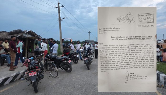 वीरगंज । वीरगंज महानगरपालिका अन्तर्गतकाे राजमार्गमा कर असुलीकाे नाममा ढाट ठेकेदारका कर्मचारीले बलजबरजस्ती अवैध असुली गर्दै आएकाेले कारवाहीकाे माग गर्दै महानगरपालिकामा उजरी परेकाे छ ।