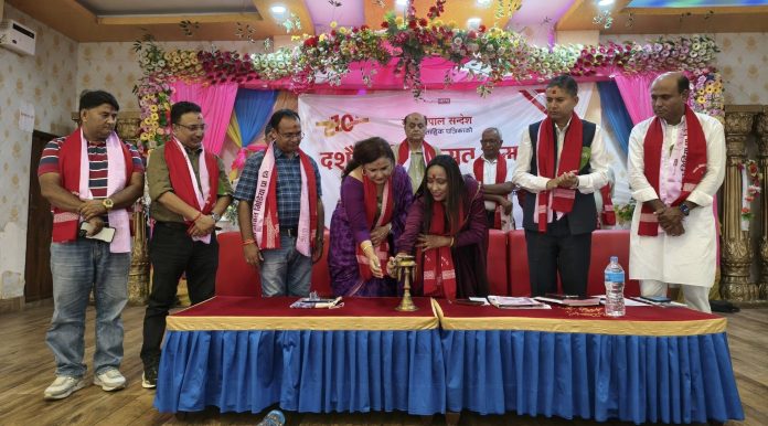 वीरगंज । मध्य नेपाल सन्देश साप्ताहिक पत्रिकाको दशौं वार्षिकोत्सव समारोह बिहीबार भव्य रूपमा सम्पन्न भएको छ । पत्रिकाकी सम्पादक कविता खड्काको अध्यक्षतामा सम्पन्न कार्यक्रम नेपाल पत्रकार महासंघकी केन्द्रीय अध्यक्ष निर्मला शर्माले उद्घाटन गरेकी थिइन ।