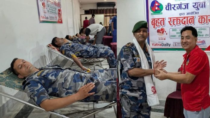 वीरगंज । वीरगंज युवा समाजले “परिवर्तनका लागि वीरगंज युवा समाज” नारासहित आयोजना गरेको रक्तदान कार्यक्रम सम्पन्न भएको छ। शनिवार वीरगंजस्थित होटेल मकालुमा सम्पन्न कार्यक्रममा १३ जना महिलासहित १०३ जनाले रक्तदान गरेका छन्।