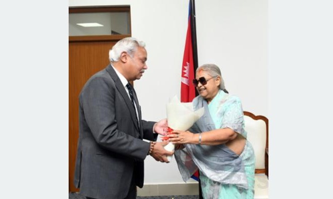 काठमाडौँ । नेपालका लागि भारतीय राजदूत नवीन श्रीवास्तवले मंगलबार प्रधानमन्त्री सुशीला कार्कीसँग शिष्टाचार भेट गरेका छन् । सिंहदरबारस्थित प्रधानमन्त्री तथा मन्त्रिपरिषद्को कार्यालयमा भएको भेटमा द्विपक्षीय हित र आपसी चासोका विभिन्न विषयमा छलफल गरिएको प्रधानमन्त्रीको सचिवालयले जनाएको छ ।