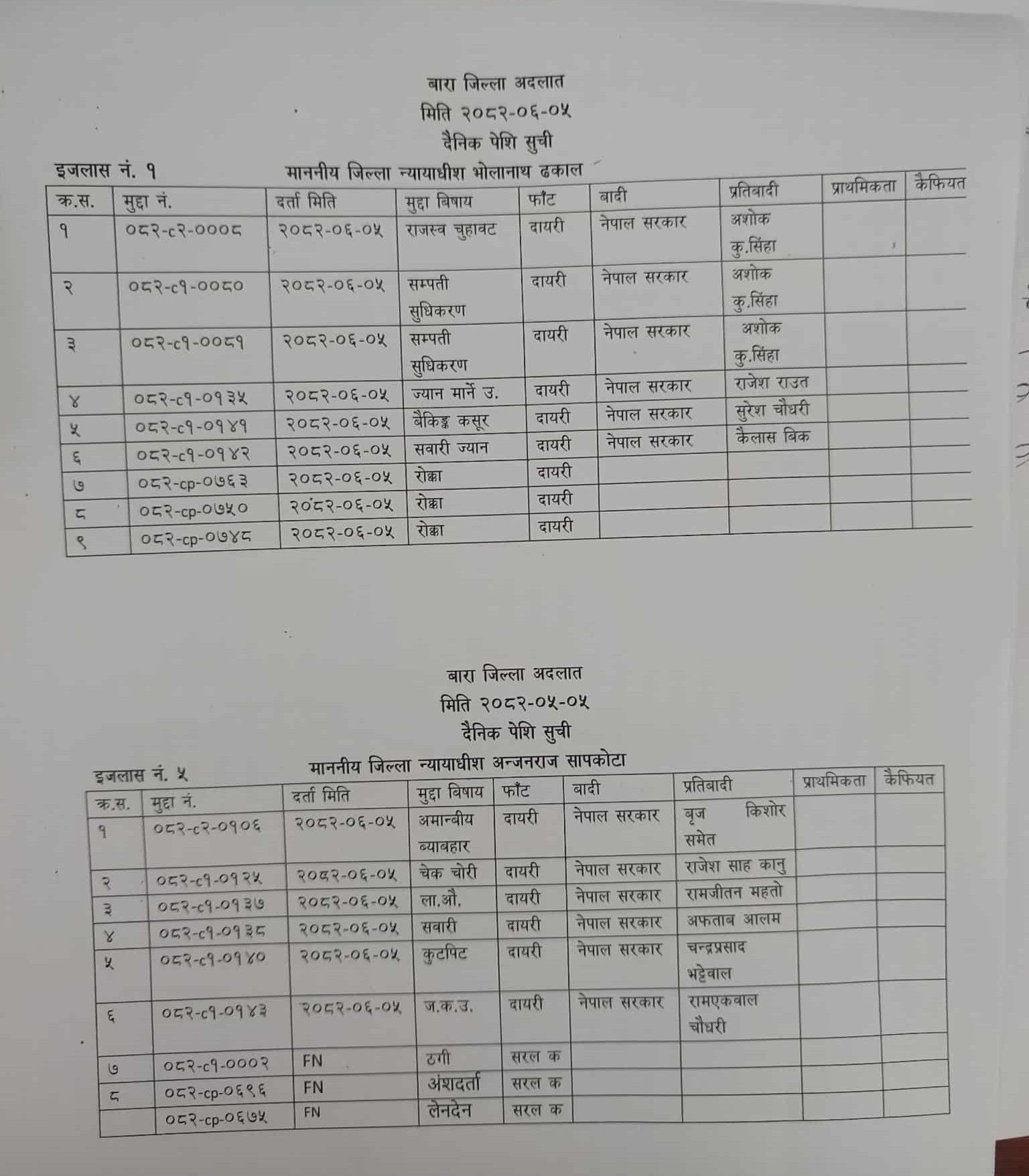 यस बारे बारा प्रहरी र अदालत प्रशासनलाई जानकारी गराउदा समेत हाजिर भएका व्यक्तिहरुकाे बारेमा अनुसन्धान भएकाे थिएन । अदालतका स्रेस्तेदार राजकुमार दाहालले अदालतमा मुद्दामा सम्बन्धित व्यक्तिलाई नै परिचयपत्र खुल्ने कागजात हेरेर ब्यान गराइएकाे बताए । उनका अनुसार अदालतमा राजस्व चुहावट तथा सम्पत्ति शुद्धीकरण मुद्दामा भारतिय नागरिकलाई आधार कार्डकाे आधारमा हाजिर गराएर धरौटीमा छाड्न आदेश भएको हो ।