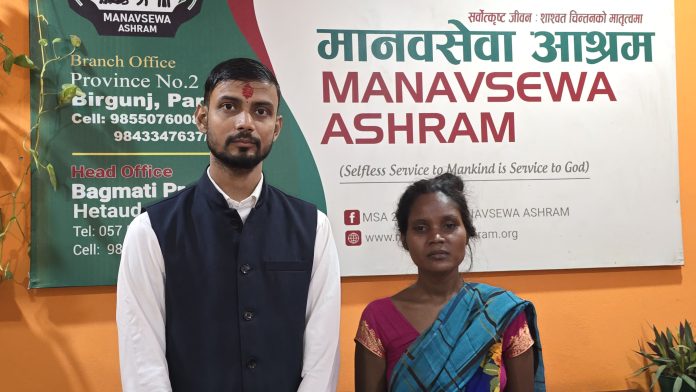 वडा प्रहरी कार्यालयका प्रहरी सहायक निरीक्षक भुलेंद्र गिरि र समाजसेवी प्रकाश थारुले अन्दाजी ३० वर्षकी ती महिलालाई मानवसेवा आश्रम वीरगञ्ज शाखामा पुर्याएका हुन्। महिलाले आफ्नो नाम, थर र ठेगाना प्रष्ट बताउन नसकेकी कारण आश्रममार्फत उनको पहिचान खुलाउने प्रयास भइरहेको आश्रमले जनाएको छ।