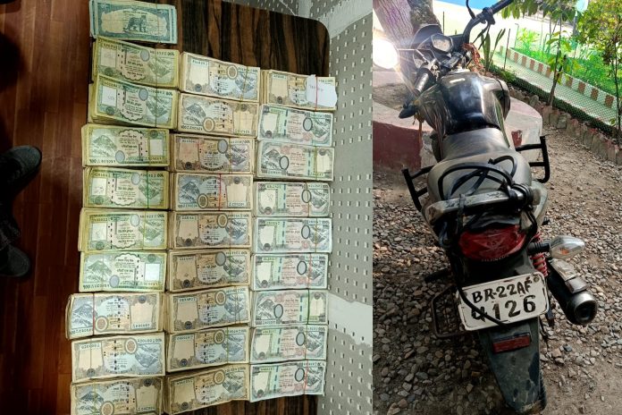 आइतबार दिउँसो करिब २:३० बजे चेकजाँचका क्रममा बिआर२२एएफ४१२६ नम्बरको मोटरसाइकलमा सवार पकाहाँ मैनपुर–१ का ३४ वर्षीय अवधेश पटेललाई रोकेर चेक गर्दा मोटरसाइकलको लेगगार्डमा राखिएको ‘पंकज मसाला’ लेखिएको झोलाभित्र कालो प्लास्टिकमा बेरिएको अवस्थामा नगद फेला परेको प्रहरीले जनाएको छ।