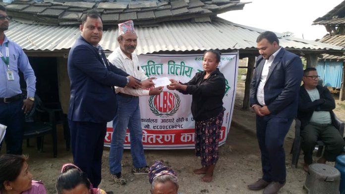 कार्यक्रममार्फत बाघमोर्चा कालिका महिला समूहकी सदस्य सोनिया मगरलाई जम्मा १० लाख ४० हजार रुपैया बराबरको राहत हस्तान्तरण गरिएको शाखाले जानकारी दिएको छ । सो राहतमा ५ लाख धितो ऋण मिन्हामा तथा ५ लाख ४० हजार चेकमार्फत प्रदान गरिएको हो ।