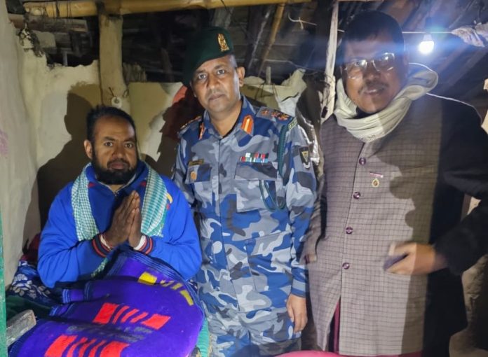 आइतबार साँझ ५ः३० बजे सशस्त्र प्रहरी बल नं. १३ गण हे.क्वा. पर्साका गणपति सशस्त्र प्रहरी उपरीक्षक पुरन चन्द्र भट्टले वीरगंज महानगरपालिका–२८ बगही निवासी ३६ वर्षीय मन्सी पटेलको घरमा पुगेर भेटघाट गर्नुभएको थियो । साेही क्रममा उहाँले मधेस आन्दोलनका जिउँदो शहिदका रूपमा परिचित मन्सी पटेलको परिवारलाई न्यानो कपडा (कम्बल) तथा खाद्यान्न सामग्री सहयाेग गर्नु भयाे ।