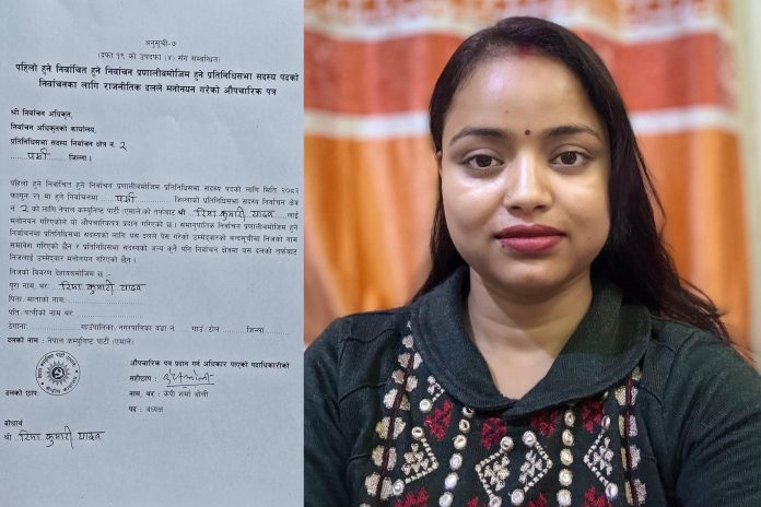 वीरगंज । नेपाल कम्युनिष्ट पार्टी (एमाले) ले पर्सा क्षेत्र नं. २ बाट रिमा कुमारी यादवलाई प्रतिनिधि सभा सदस्यको उम्मेदवार बनाउने निर्णय गरेको छ ।