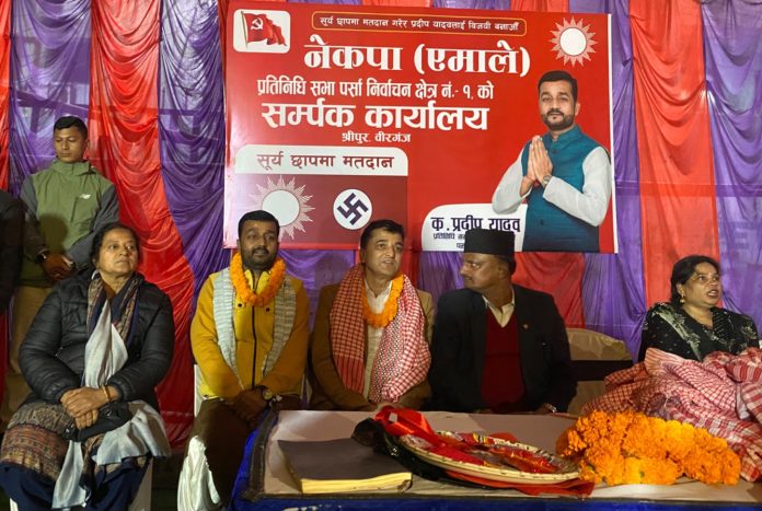 वीरगंज । पर्सा क्षेत्र नम्बर–१ अन्तर्गत वीरगंज महानगरपालिका वडा नम्बर–१२ श्रीपुरमा नेकपा एमालेका उम्मेदवार प्रदीप यादवको सम्पर्क कार्यालय स्थापना गरी सञ्चालनमा ल्याइएको छ। बिहीबार नेकपा एमालेका उपमहासचिव तथा पूर्वमन्त्री योगेश भट्टराईले उक्त सम्पर्क कार्यालयको औपचारिक उद्घाटन गरेका हुन्।