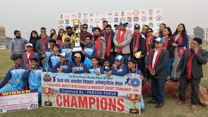 वीरगंज । १०औँ प्याब्सन नेपाल मेडिसिटी अन्तर विद्यालय टी–२० नकआउट क्रिकेट प्रतियोगिताको उपाधि मुनलाईट माध्यमिक विद्यालयले उचालेको छ । प्याब्सन पर्साको आयोजनामा गत माघ ८ गतेदेखि सञ्चालन भएको प्रतियोगितामा ४० विद्यालयको सहभागिता रहेको थियो ।