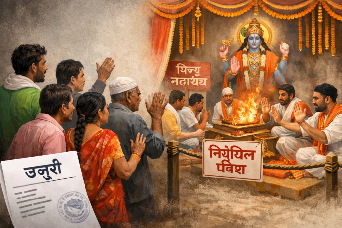 वीरगंज । पर्साको कलिकामाई गाउँपालिका वडा नम्बर ५ सेमरा टोलमा आउँदो फाल्गुन ६ गतेदेखि हुने विष्णु महायज्ञमा दलित समुदायलाई पूजा कार्यक्रममा सरिक नगराइएको आरोप लागेपछि स्थानीय दलितहरू आक्रोशित भएका छन्।