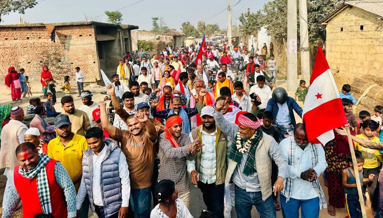वीरगंज । पर्साको जगरनाथपुर गाउँपालिका वडा नम्बर ४ मा बिहीबार नेपाली कांग्रेसका प्रतिनिधिसभा सदस्य उम्मेदवार रमेश रिजाल घरदैलो कार्यक्रममा सहभागी हुँदा स्थानीय मतदाताले स्वागत गर्दै समर्थन जनाएका छन्।