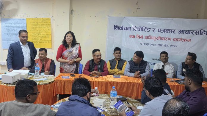 वीरगंजमा । निर्वाचन रिपोर्टिङलाई मर्यादित, निष्पक्ष र जिम्मेवार बनाउन केन्द्रित एक दिने अभिमुखीकरण कार्यक्रम बुधबार वीरगञ्जमा सम्पन्न भएको छ ।