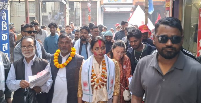 वीरगंज । नेपाल कम्युनिष्ट पार्टी (एमाले) पर्सा क्षेत्र नम्बर–२ की उम्मेदवार रिमा कुमारी यादव ले सोमबार वीरगंज महानगरपालिका वडा नम्बर ६ र १० मा घरदैलो कार्यक्रम सम्पन्न गर्दै मतदातासँग प्रत्यक्ष भेटघाट गरेकी छन्।