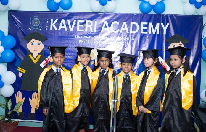 :वीरगंज । नेपाल कावेरी एकेडेमीले यूकेजी कक्षाका विद्यार्थीहरूको दीक्षान्त समारोह भव्य रूपमा सम्पन्न गरेको छ।