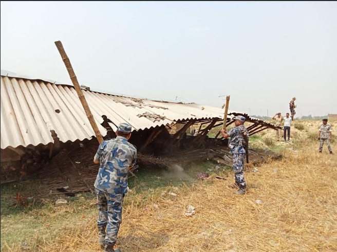 वीरगंज । पर्साको बिन्दबासिनी गाउँपालिका वडा नं. ४ प्रसौनीभाठ्ठा अमरपट्टीस्थित दशगजा सीमा क्षेत्रमा रहेका अवैध संरचना हटाइएको छ।