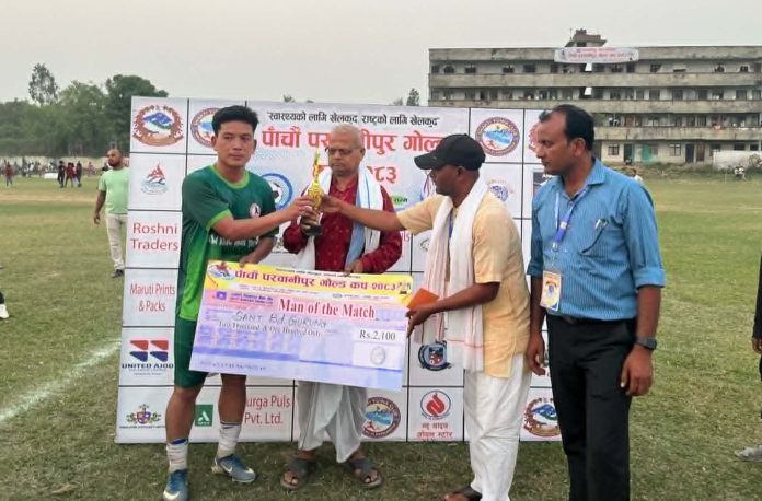 उत्कृष्ट प्रदर्शन गरेका निजगढका सन्तबहादुर गुरुङ म्यान अफ दि म्याच घोषित हुँदै २१०० रुपैयाँ नगद पुरस्कार प्राप्त गरे। उक्त पुरस्कार समाजसेवी जतन राउत कुर्मीले प्रदान गरेका थिए।