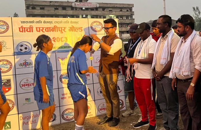 वीरगंज । पाँचौं परवानीपुर गोल्डकप फुटबल प्रतियोगिता अन्तर्गत शुक्रबार सम्पन्न महिला मैत्रीपूर्ण खेलमा वीरगन्ज युथ एकेडेमी विजयी भएको छ।