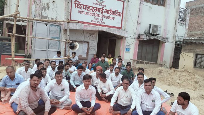 वीरगंज । तलब नपाएको भन्दै पर्साको छिपहरमाई गाउँपालिकाका कर्मचारीहरूले गाउँपालिका कार्यालयमा तालाबन्दी गरि धर्ना बसेका छन् । गाउँपालिका तथा वडा कार्यालयहरूमा कार्यरत करारका कर्मचारीहरू ७ महिनादेखि तलब नपाएको गुनासो गर्दै आन्दोलनमा उत्रिएका हुन् ।