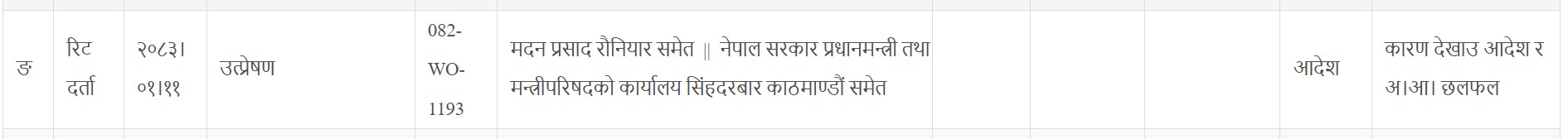 मुआब्जा माग गर्दै दायर गरिएको उक्त मुद्दामा अल्पकालीन अन्तरिम आदेशको माग गरिएको भए पनि अदालतले सो आदेश जारी नगरी कारण देखाऊ र छलफलका लागि बोलाउने आदेश दिएको हो । छलफलको मिति भने अदालतले भोलि तय गर्ने बताइएको छ ।